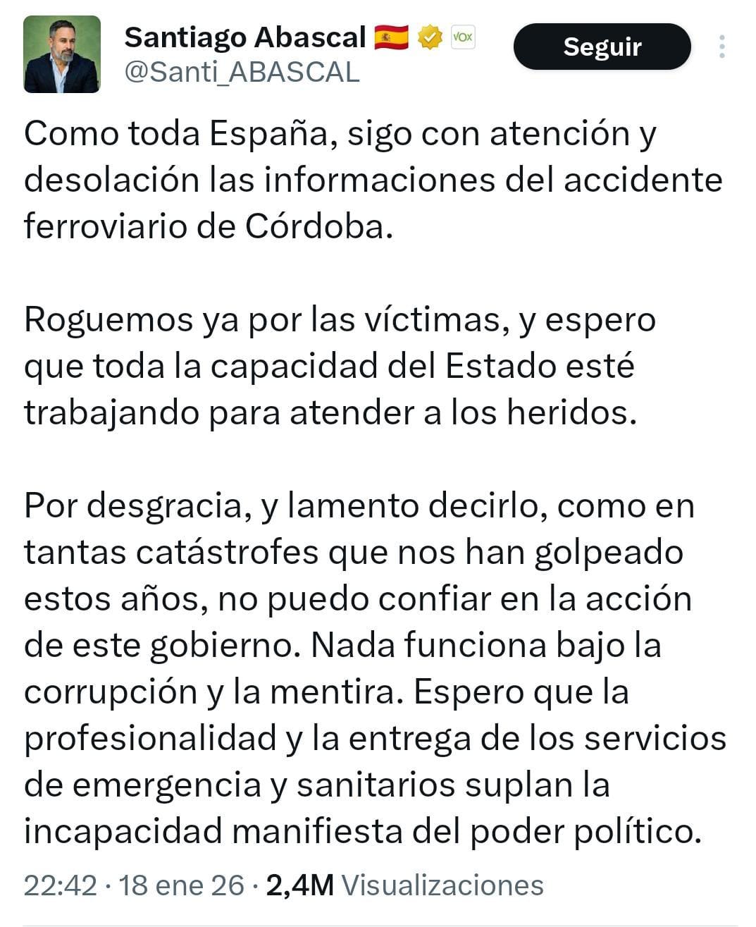 En las crisis no se va a brillar. Se va a acompañar y ser útil. Esa es la primera regla que suele olvidarse en algunos sectores de la política cuando irrumpe una tragedia. El accidente ferroviario de Adamuz nos dejó un mapa bastante claro de qué comunicaciones ayudan y cuáles estorban cuando todo está aún por ordenar.